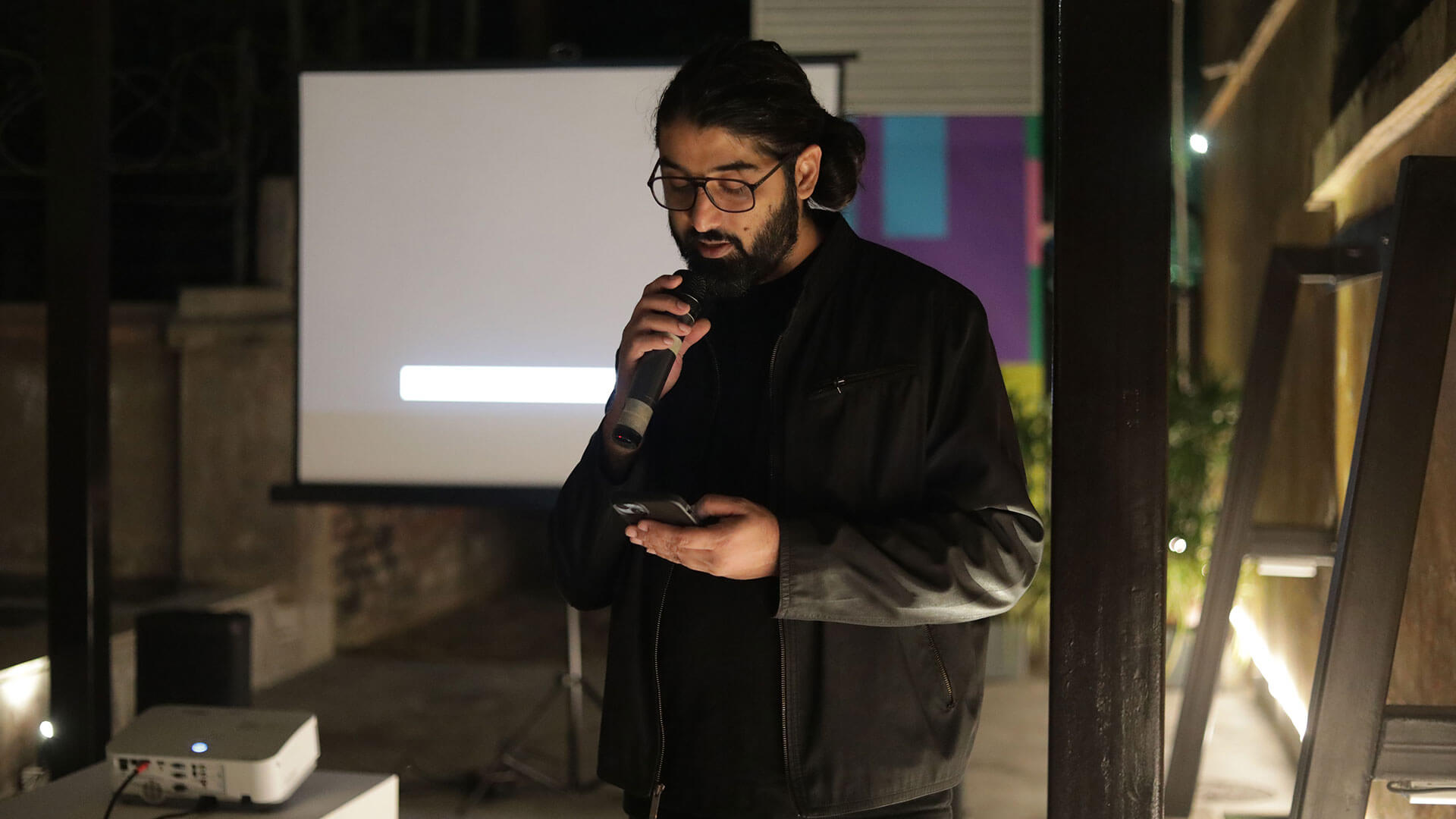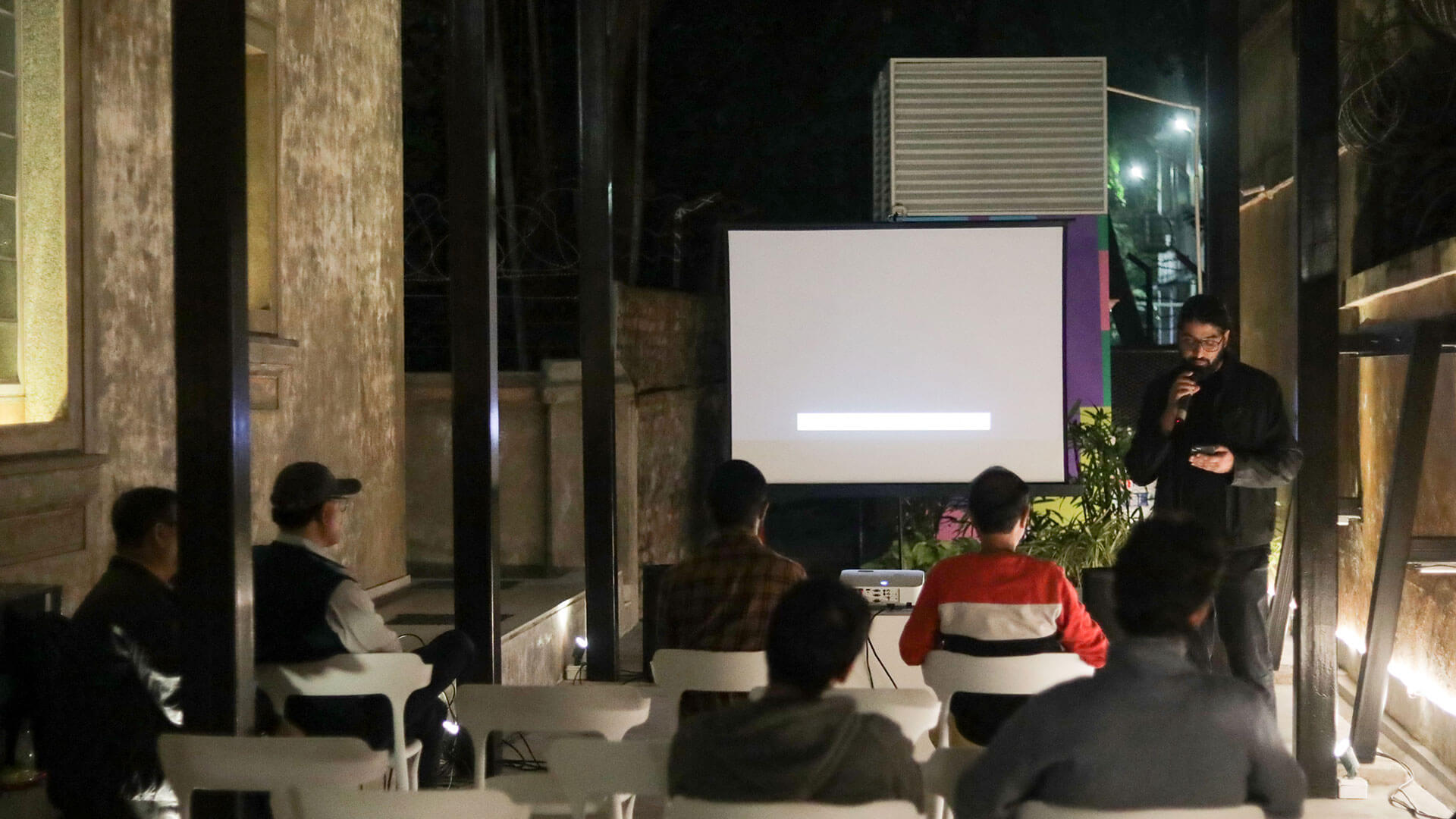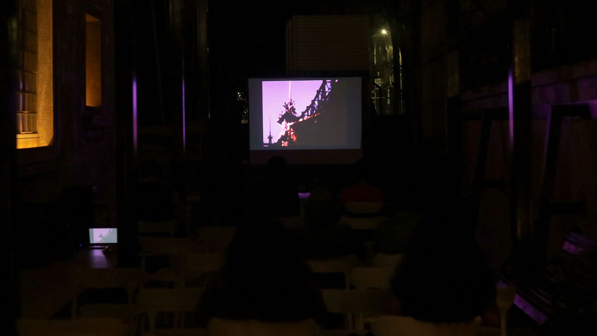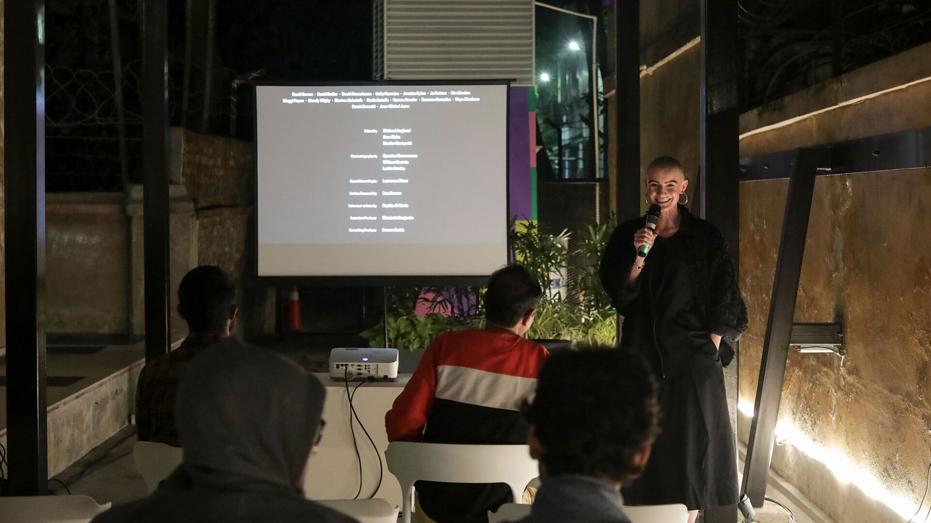 Outdoor film screening showcasing global techno culture.